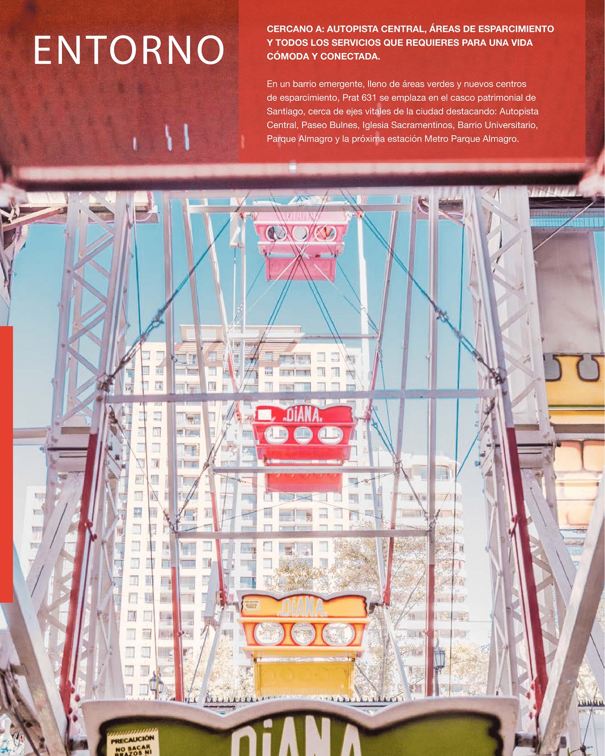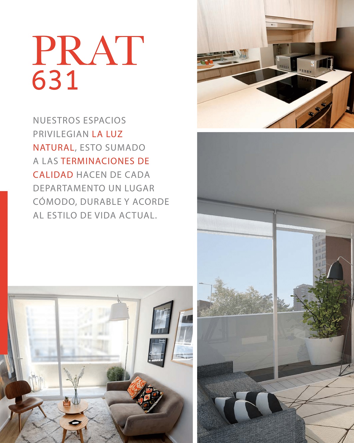 Ubicado en calle Arturo Prat 631, en Santiago Centro, se emplaza este nuevo proyecto de Norte verde. Este edificio cuenta con 9 pisos y ofrece una arquitectura de vanguardia en un barrio en pleno desarrollo inmobiliario, rodeado de áreas verdes. Cerca del Parque Almagro y a tres cuadras de la estación de metro Parque Almagro. En edificio Prat 631, se concentra un espacio blanco con iluminado equipamiento de áreas comunes modernas, que privilegian la comodidad y calidad de vida de sus residentes.