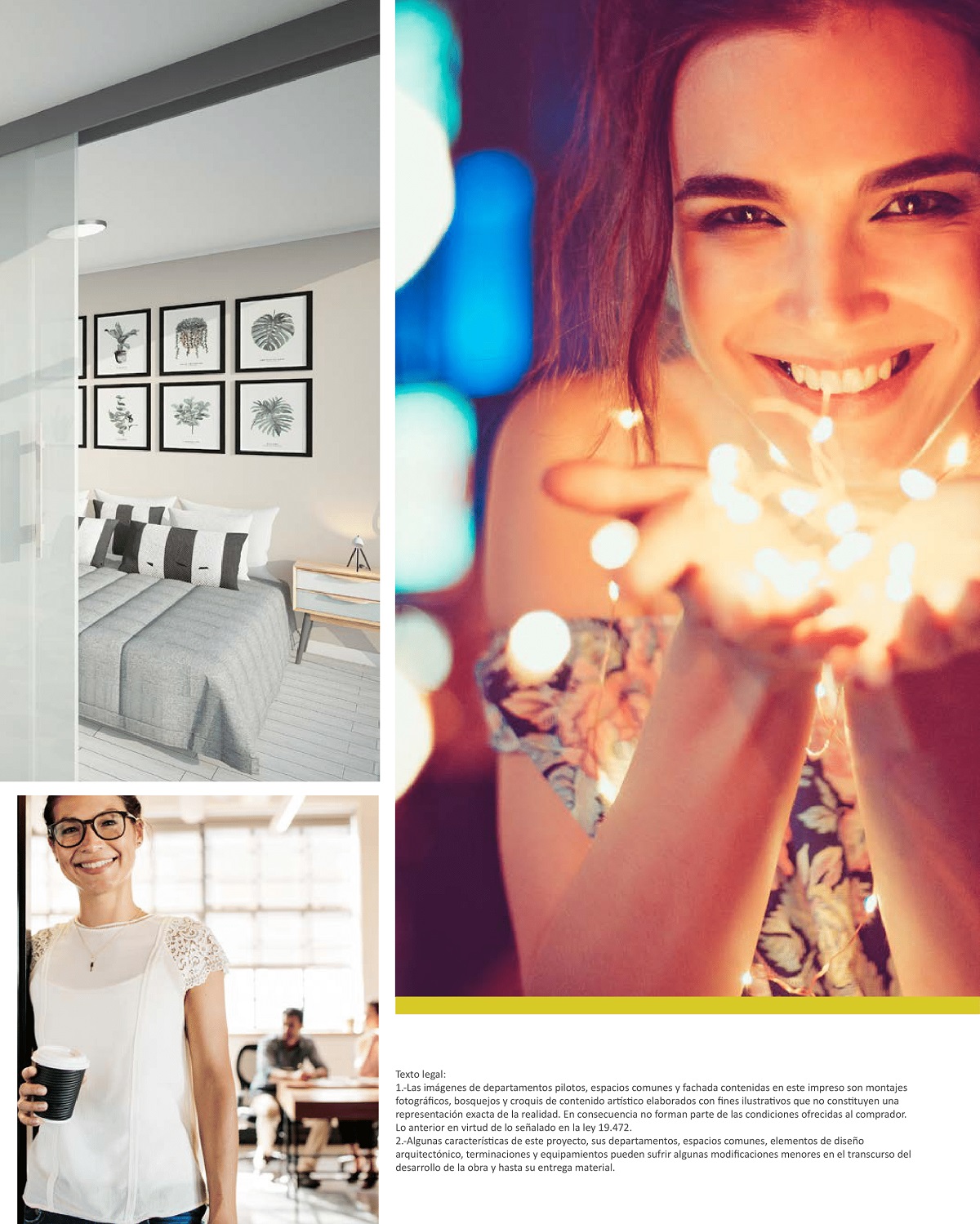- Espacios Comunes: Terraza con vista panorámica - Piscina - Espacio Cowork - Jardines Interiores - Plazas en altura.